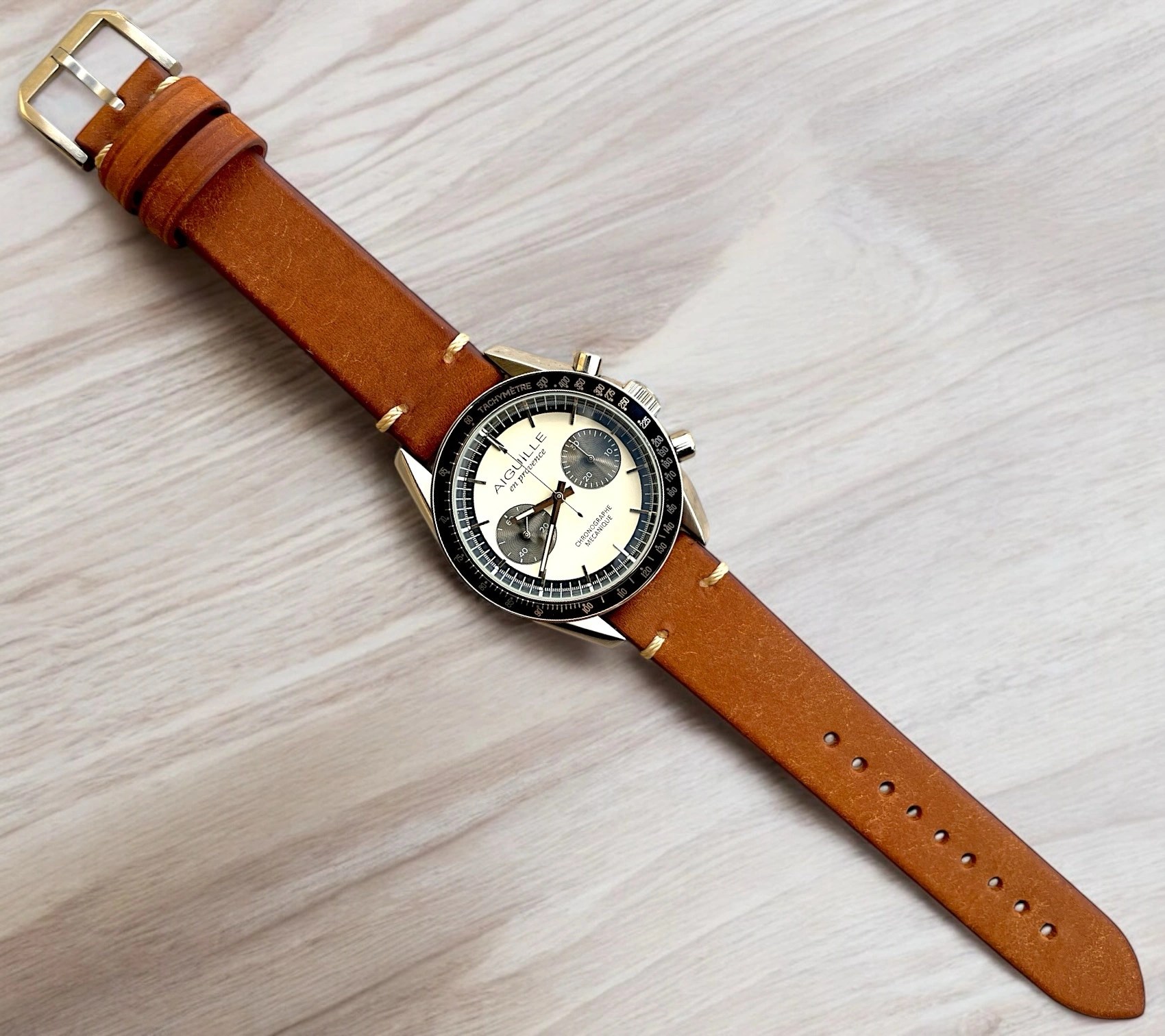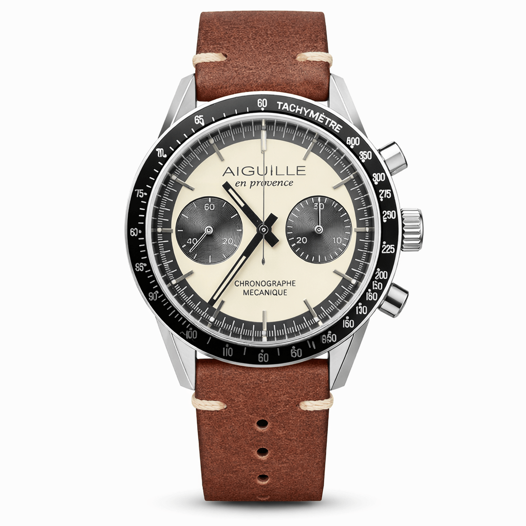 Embarquez pour un voyage intemporel avec notre chronographe inspiré par les routes des Baux, un modèle alliant sportivité et élégance pure. Son cadran “panda” bicolore au style vintage ne laissera personne indifférent, captivant les regards avec un contraste unique et audacieux. Son boîtier en acier de 42 mm, protégé par un verre bombé, révèle un mouvement mécanique à remontage manuel, un gage de précision pour les véritables passionnés d’horlogerie.